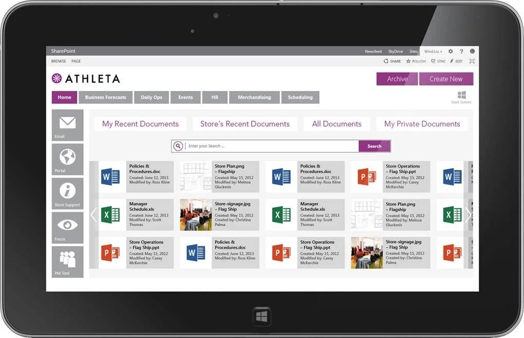 Introducing the Tablet the result of my workshops led me to conclude Store Managers needed a way to be able to work on the floor, and at the same time access documents, and manage the administrative workflow of a store. That is why my team and I suggested the introduction of a tablet to completely support the day to day work of Store Managers globally.